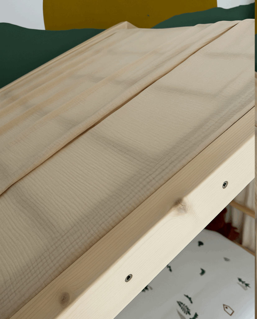 Geef het klimbed van je kind een magische touch met ons bedgordijn van 100% katoenen mousseline.