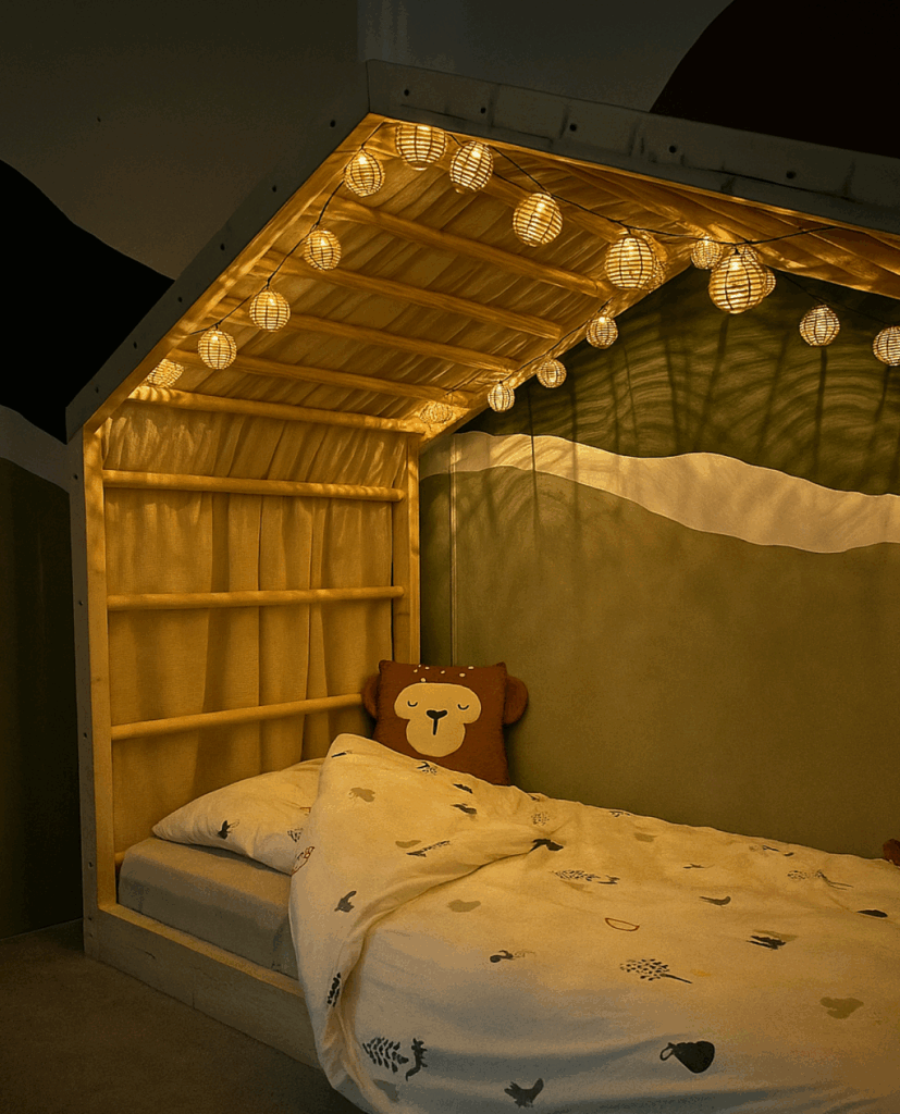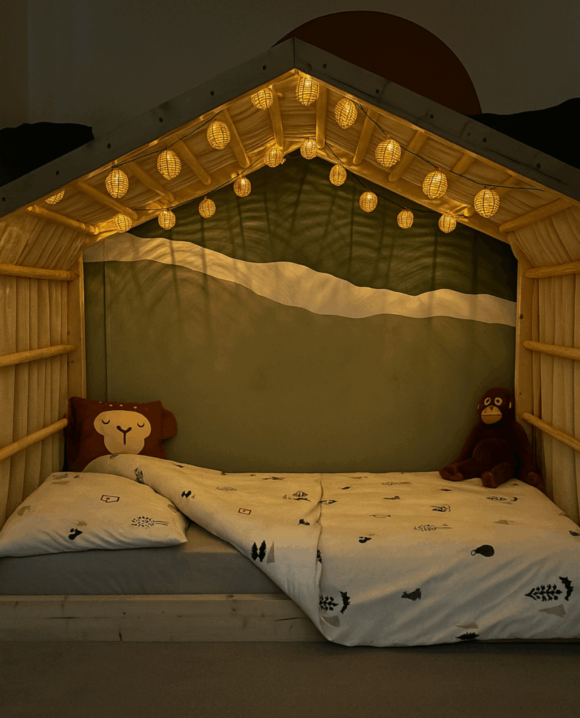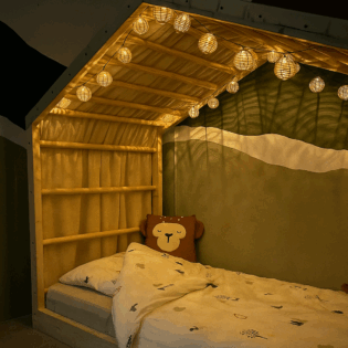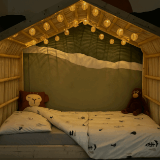 Met dit bedgordijn maak je op een natuurlijke en speelse manier verschil tussen dag en nacht.