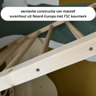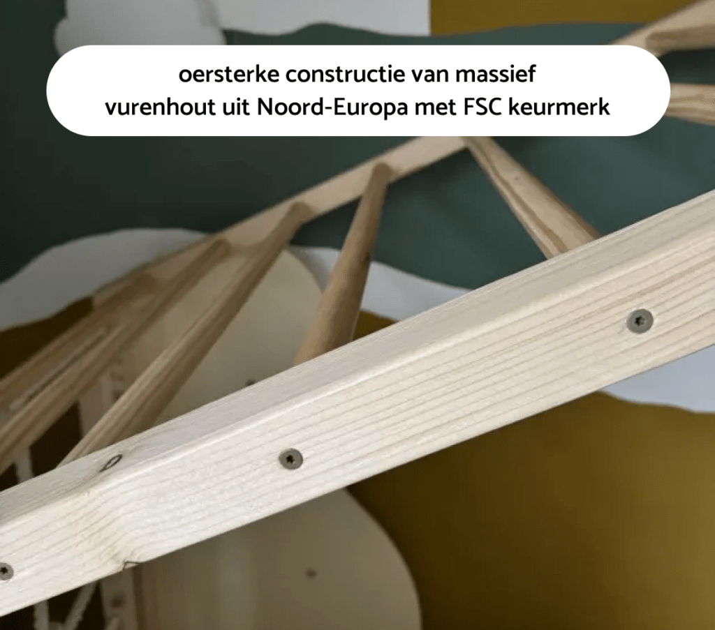 Uiteraard, de constructie van dit bed is oersterk! Het peuterbed is uitvoerig getest door onze eigen klimaapjes (en volwassen klimaapjes 😉). Ondanks dat je er als volwassene in kan hangen, hanteren we een maximaal gewicht van 40kg en minimale leeftijd van 3 jaar. Veiligheid boven alles!