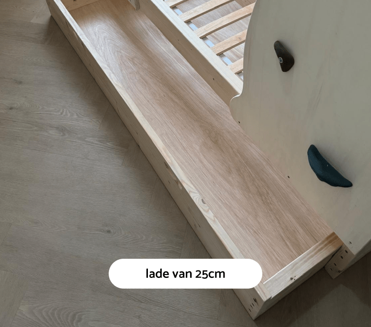 Met ons Montessori speel- en klim peuterbed is naar bed gaan geen strijd meer. Overdag kan je kind volop klimmen, spelen en zijn energie kwijt, waardoor ze ’s avonds makkelijker tot rust komen. Omdat het peuterbed niet alleen een slaapplek is, maar ook een vertrouwde speelomgeving, voelt je peuter zich veilig en ontspannen om rustig in slaap te vallen.
