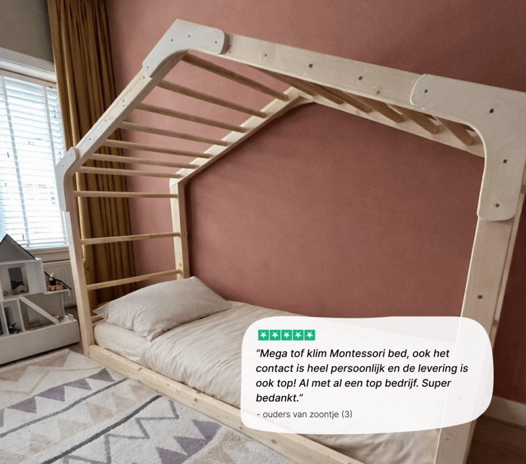 Sommige kinderen hebben meer nodig dan alleen een plek om te slapen. Ze willen klimmen, bewegen en hun grenzen verkennen — ook binnenshuis. Dit Montessori klimbed is ontworpen voor actieve kinderen die moeilijk tot rust kunnen komen. Dit klimbed geeft je kind een leuke en veilige speelplek, waar klimmen wél mag!