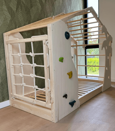 Door het klimbed onderdeel te maken van de dagelijkse routine, help je je kind om hun natuurlijke behoefte aan beweging te volgen. Hun kamer wordt zo een fijne, vertrouwde plek om te spelen én te ontprikkelen.